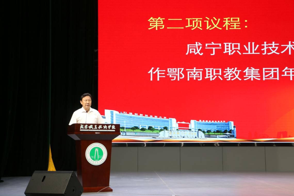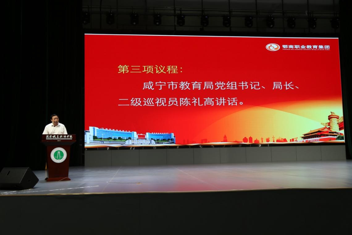 陈礼高以推动咸宁职业教育高质量发展为主题作专题报告,提出要常态化落实本地生源、本地培养、本地就业的工作机制;要畅通学业晋升通道,构建技术技能人才成长路径;要畅通教师发展通道,打造充满活力的“双师型”教师队伍;要全面落实学校办学主体责任,激活发展内生动力;要深化产教融合,服务咸宁经济社会发展。