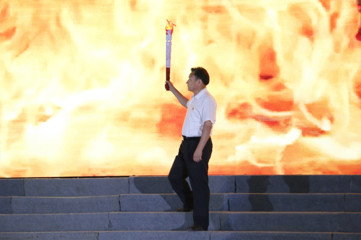 大会开始,以“四史”时间为进程,由1名学生党员、2名教职工党员和党委书记王继成4人传递的火炬点亮星火,拉开活动序幕。