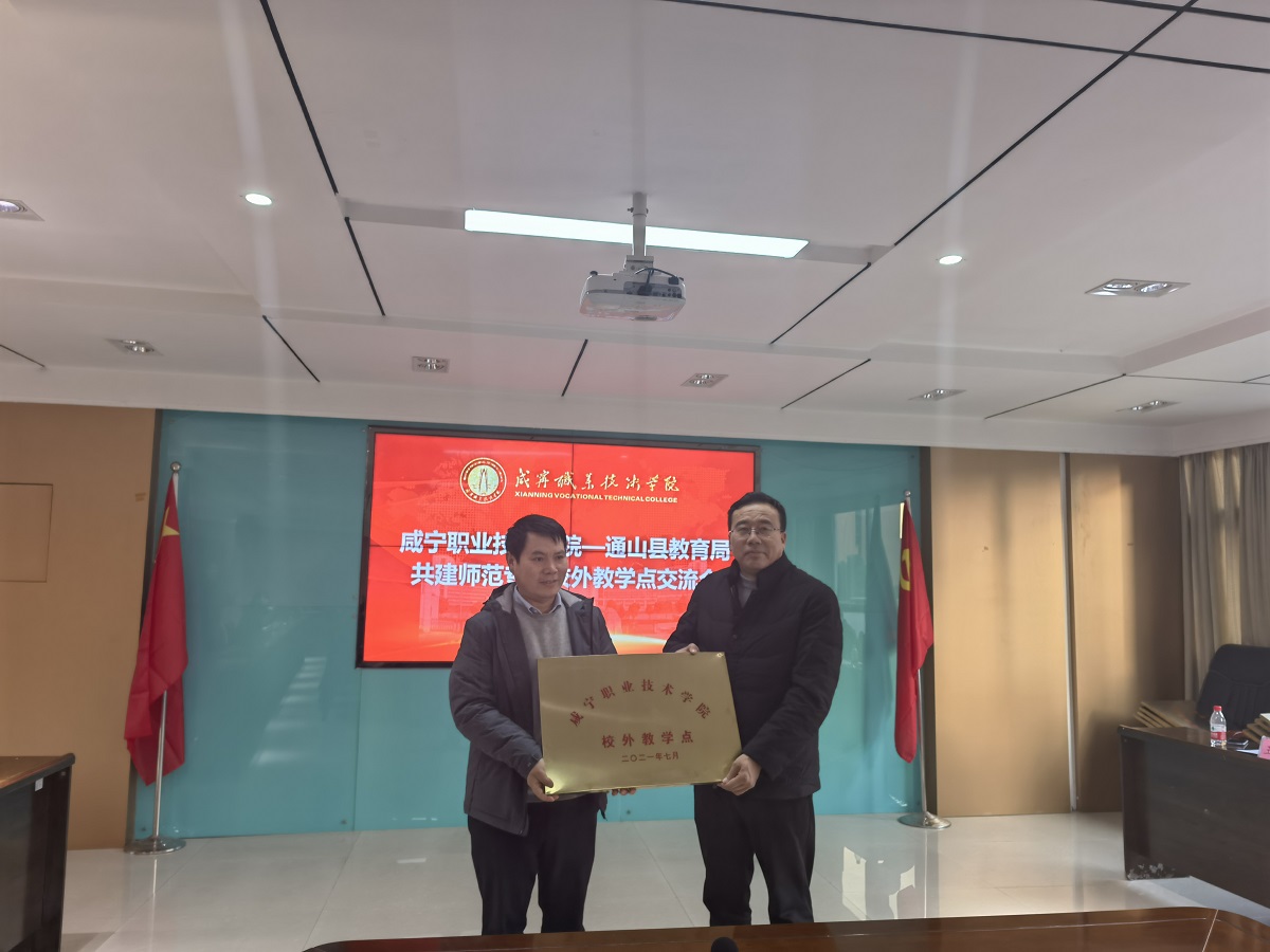 最后,方旭、徐广臣共同为通山县12所中心学校主持了简短而隆重的“咸宁职业技术学院校外教学点”授牌仪式。