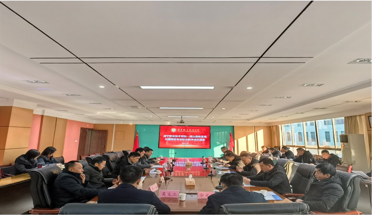 12月30日,通山县教育局副局长徐广臣率领教师发展中心主任、副主任及12所中心学校校长来访我校,参观了我校教育实训中心、生物园林工程实训基地和新产业公共实训基地,并就共建师范专业校外教学点进行座谈交流。我校副校长方旭出席座谈会。会议由我校副校长曹树真主持。