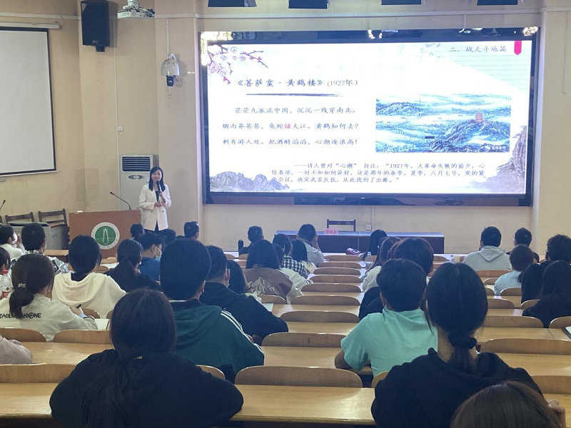 廖咏絮以《毛泽东诗词与中共党史》为题,为学员上开班党课。廖教授围绕毛泽东诗词与中共党史的关系,带领我们回顾了中国共产党一路走来的风雨历程,让大家从中汲取精神力量与前进动力,树立正确的党史观,保持乐观的积极心态。