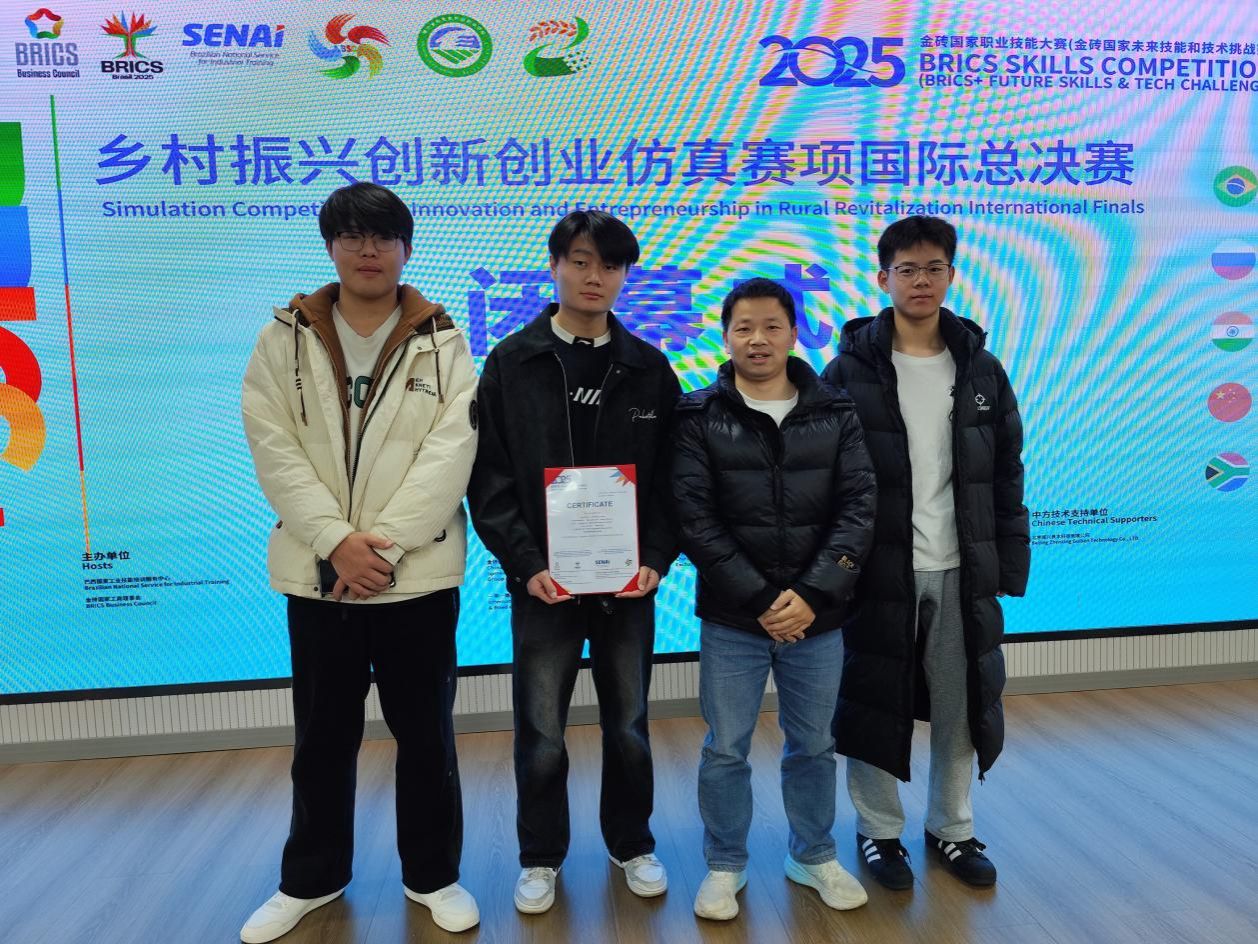 17 | 2025-1111月16日,2025年金砖国家职业技能大赛(乡村振兴创新创业仿真赛项)国际总决赛在鄂尔多斯生态环境职业学院圆满落幕。由我校援疆教师徐群刚指导的双河职业技术学院现代农业技术专业2024级学生李璐毅、楚定权、张浩冉,凭借扎实的专业功底和出色的现场发挥,在激烈竞争中脱颖而出,荣获大赛三等奖。这一成绩不仅实现了双河职业技术学院在该项赛事中“从无到有”的历史性突破,也创下了该校的首个奖项纪录,是我校全力支援新疆职业教育发展、深化教育援疆工作取得的又一重要成果。图1颁奖典礼本次大赛旨在落...