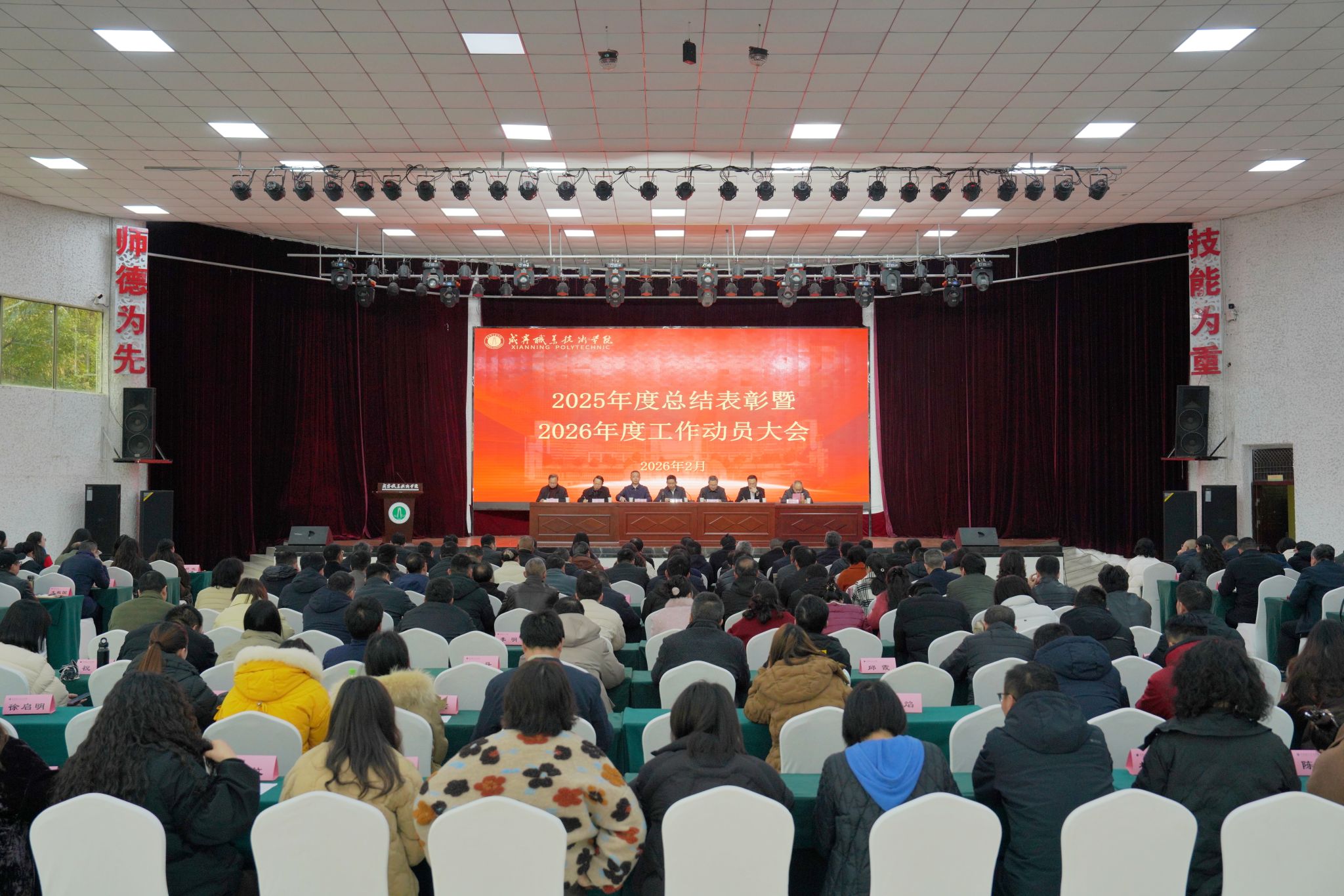 春启新程,万象更新。2月28日下午,咸宁职业技术学院隆重召开2025年度总结表彰暨2026年度工作动员大会。党委书记高焕清作重要讲话,校长陈红卫主持会议并传达相关会议精神、部署后续工作,全体校领导、副科级及以上干部、教师代表参会。陈红卫首先传达2026年全国、全省教育工作会议精神,为学校新一年发展锚定政策方向与工作遵循。随后,党委副书记华先宙宣读表彰决定,大会对生物工程学院等7个2025年度综合先进单位、4个单项先进单位、1个就业先进集体,以及先进工作者代表、就业先进个人代表进...