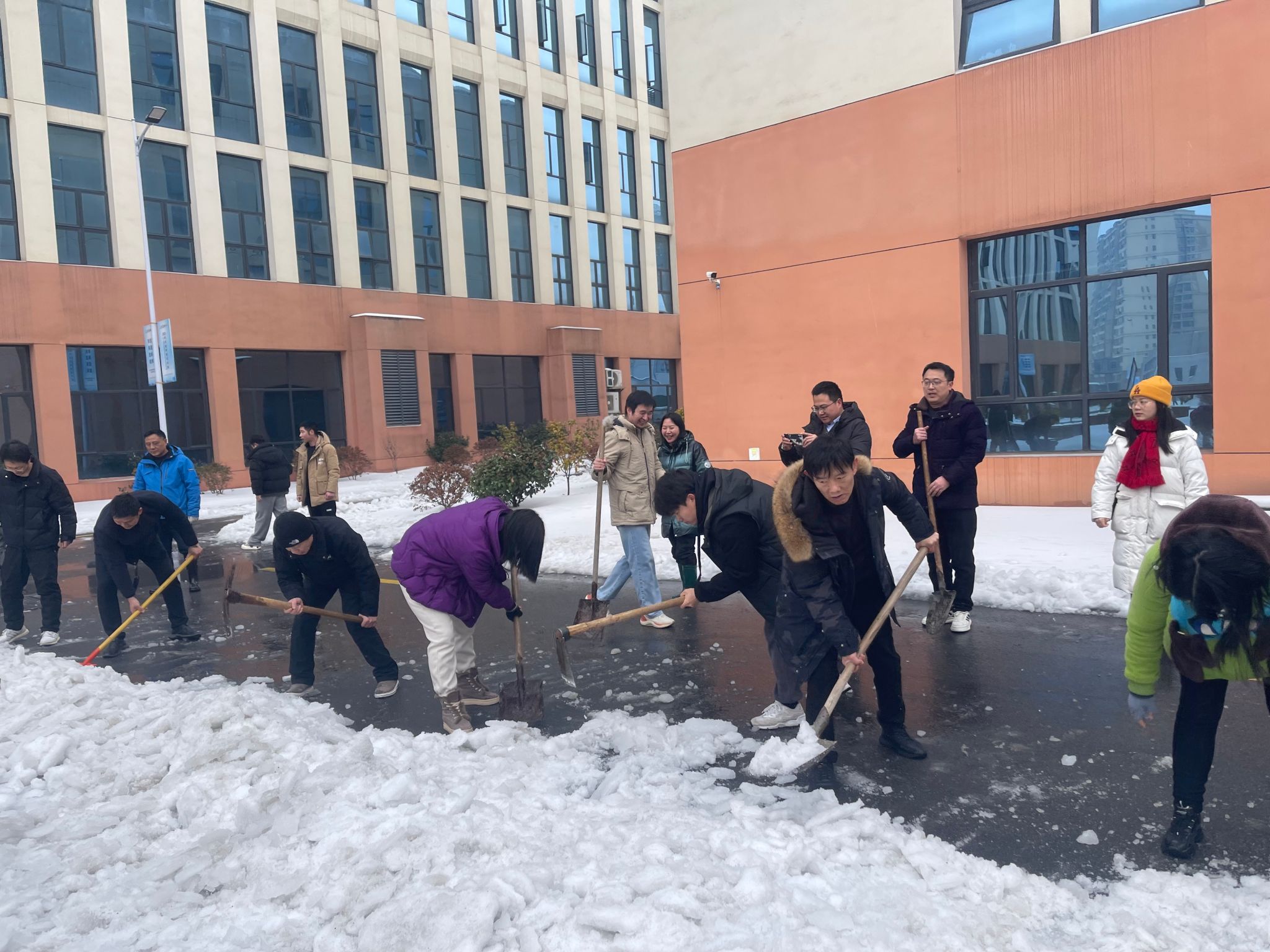 图3:工学院教职员工清雪活动现场