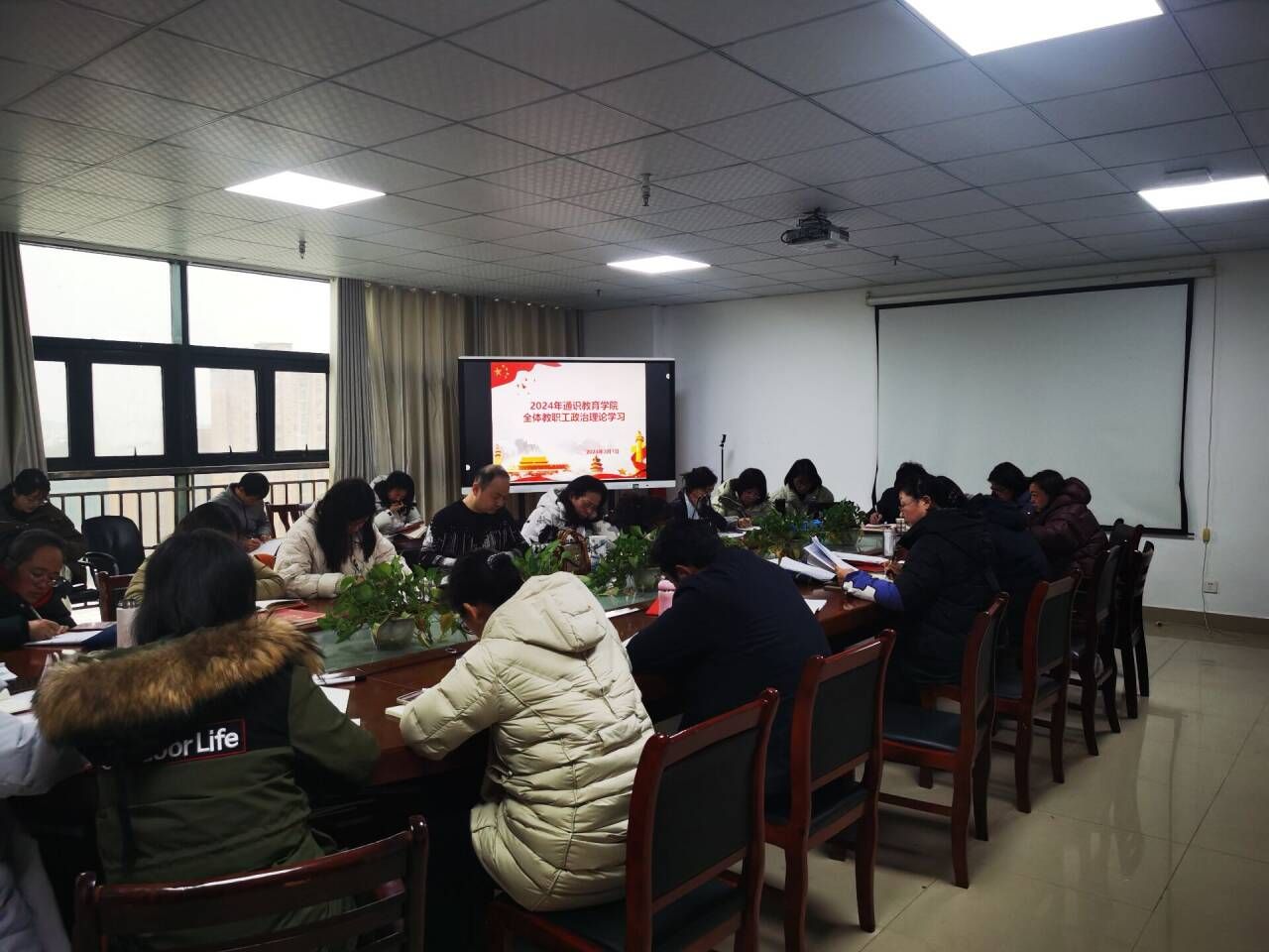 会议肯定了2023年通识教育学院教职工政治理论学习取得的成绩、不足之处和今后努力的方向。会议指出,2024年要进一步强化通识文化沁润教育,牢记“为党育人、为国育才”的初心使命,树立“躬耕教坛、强国有我”的志向和抱负,筑牢师德师风“防火墙”,争做学生为学、为人、为事的“大先生”,不负青春,不负韶华,为加快学校新一轮发展贡献通识教育的担当和责任。