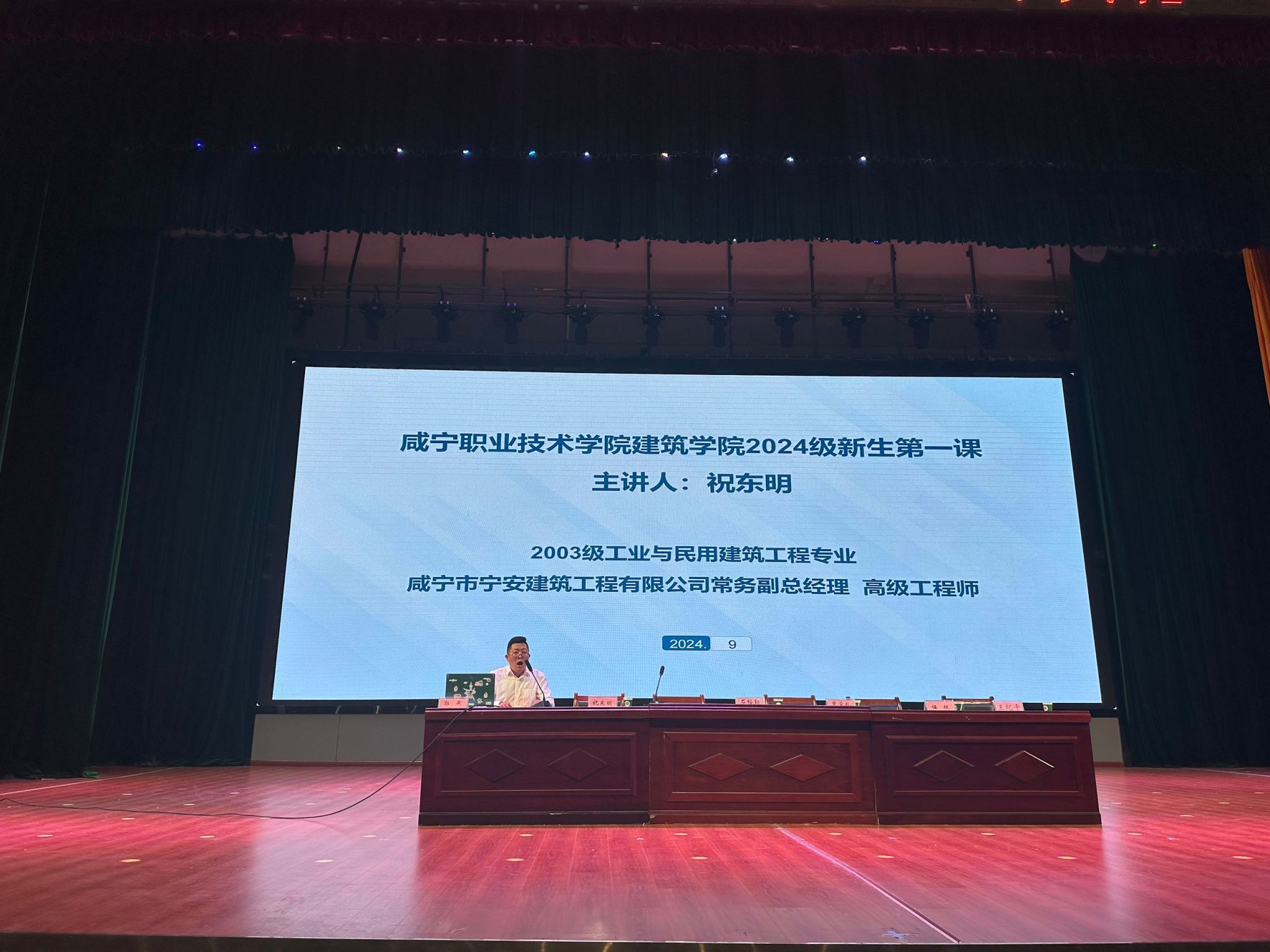 最后,咸宁市宁安建筑工程有限公司常务副总经理、高级工程师祝东明先生为新生们带来了《开学第一课》。祝东明结合自身在建筑行业的丰富经验,从建筑行业未来前景、未来人才能力要求、职业规划等方面为新生们提供了宝贵的建议和指导。祝东明先生的授课内容深入浅出、生动有趣,赢得了在场师生的阵阵掌声。