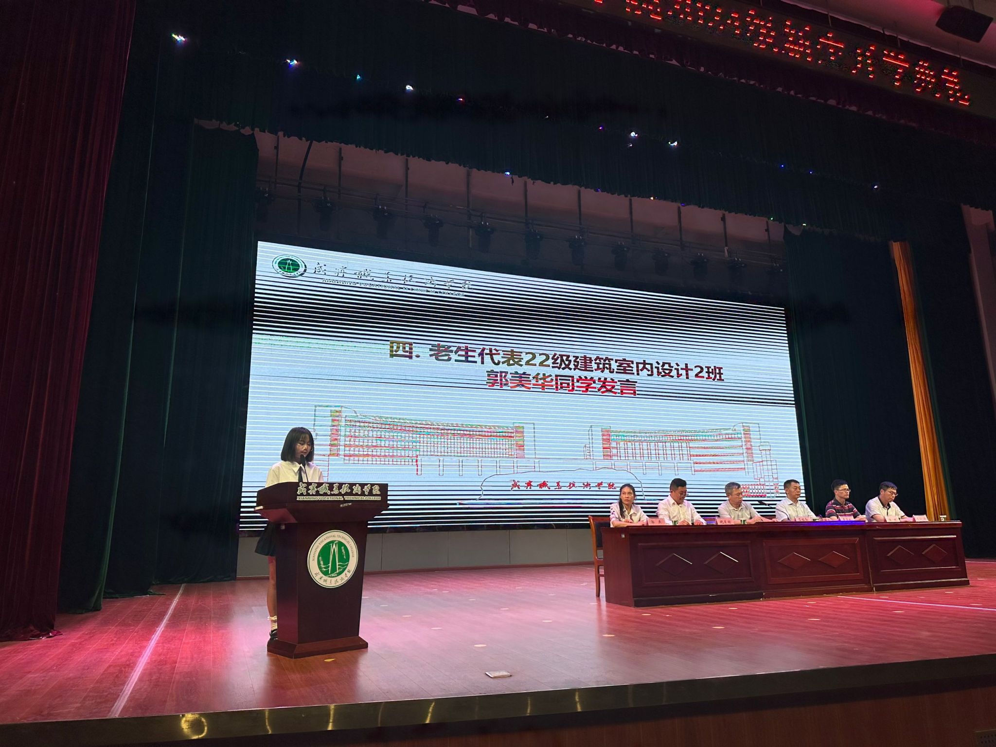 老生代表郭美华同学分享了自己在建筑学院的学习与生活经历,她用自己的成长故事激励新生们要树立远大理想,脚踏实地,不断追求卓越。郭美华同学还提醒大家要注重时间管理,平衡好学习与生活的关系,让大学生活更加充实而有意义。