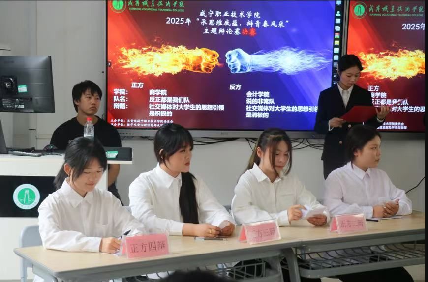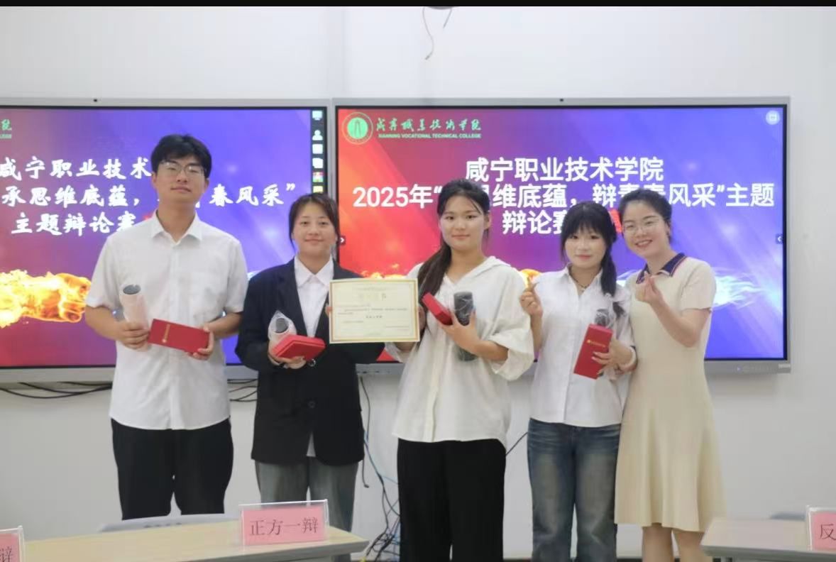 2025年5月14日,咸宁职业技术学院"承思维底蕴,辩青春风采"主题辩论赛决赛在文华楼B栋201举行。商学院两支辩论队伍分别斩获一等奖、三等奖的佳绩。此次已是商学院连续第三年在校级辩论决赛中摘得桂冠,续写了商学院思辩育人的新篇章。