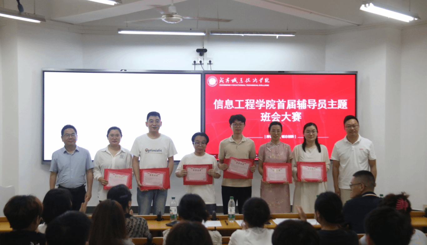 为提升辅导员职业能力,加强班级管理,开展丰富多彩班级活动,2025年5月18日,信息工程学院在励志楼403教室举办“青春领航,共筑成长”辅导员主题班会大赛。