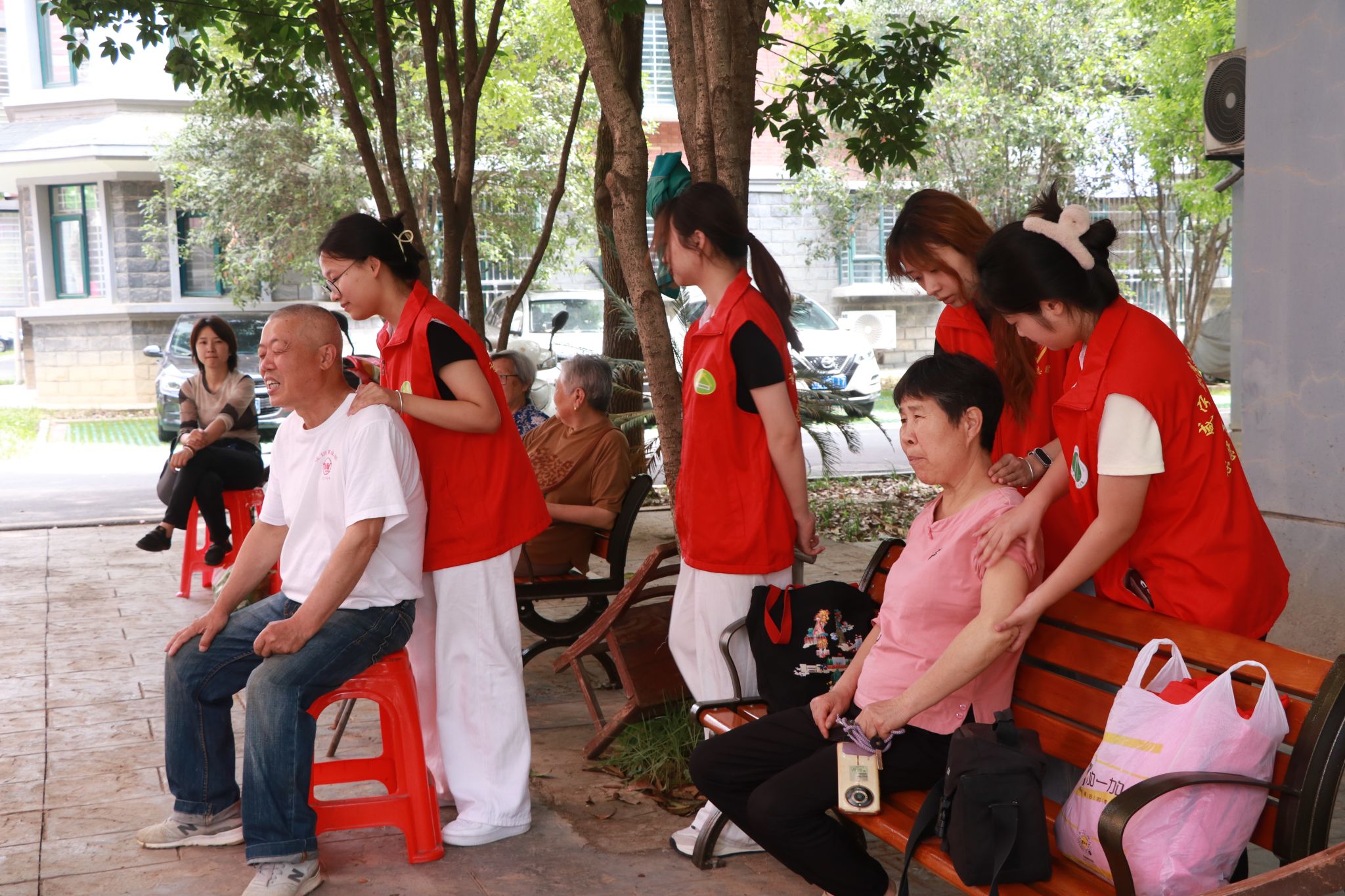 活动现场,教师团队全程驻场指导,学生志愿者与居民"一对一"结对服务,构建起"教学相长、知行合一"的实践模式。护理专业金昭老师和张彭老师带领学生逐项为居民测量血压、血糖,针对检测数据逐一分析慢性病潜在风险,结合居民日常饮食习惯给出个性化健康建议;康复治疗技术专业的学生则化身“小医生”,为颈椎病、腰椎疼痛的老年人进行中医推拿、肩颈放松按摩,同步讲解穴位定位原理与手法技巧,让小区居民既能缓解不适,又能学些“居家小妙招”。几个奶奶一起表示,“不用跑医院排队,在家门口就能享受到专业健康服务,这个活动搞得好,以后可以多搞几次!”