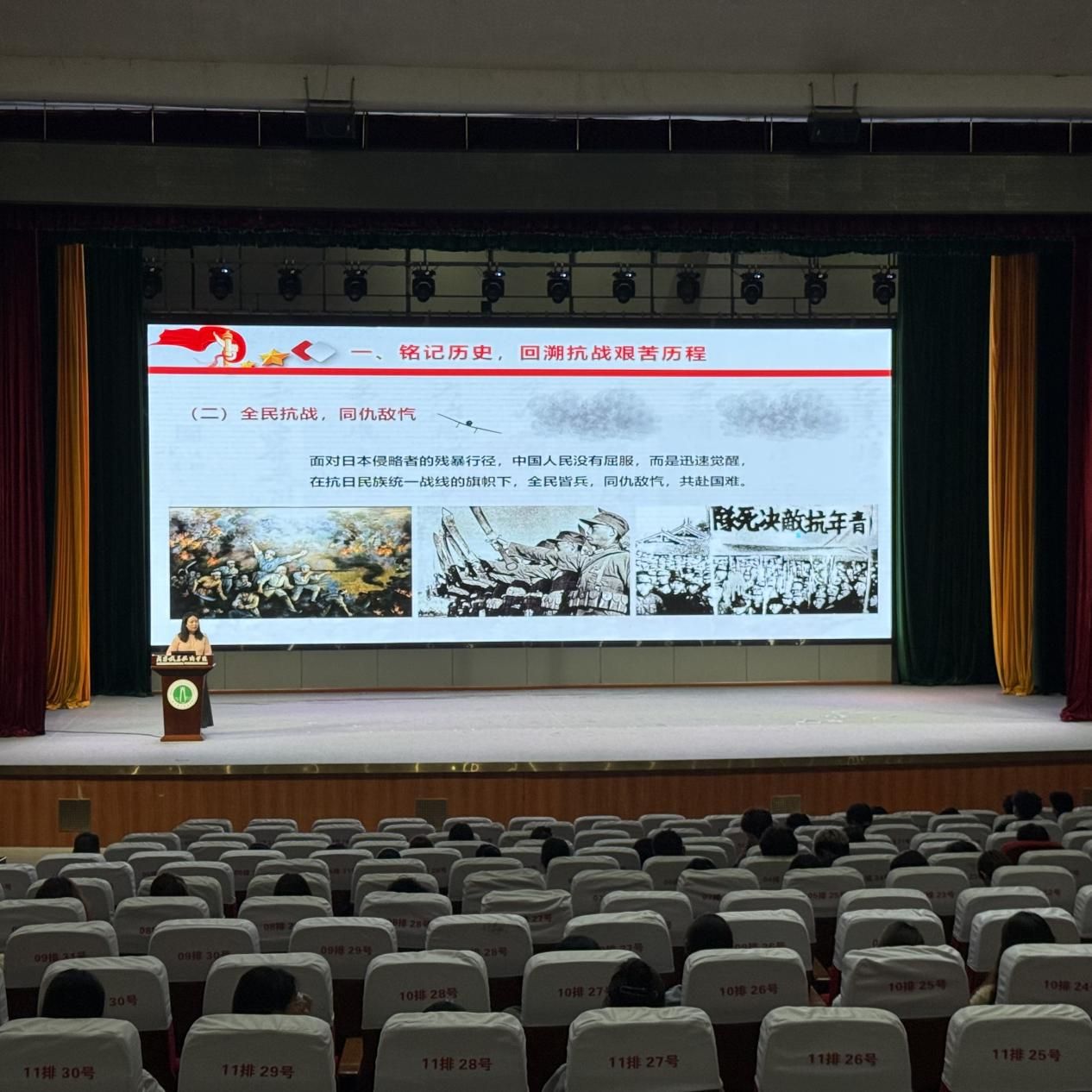 10月14日晚7时,我校科学会堂举行主题为“铸民族之魂 启大学新篇——在抗战精神照耀下书写青春华章”的“开学第一课”思政讲座。本次讲座由马克思主义学院张芬老师主讲,面向生物工程学院(乡村振兴学院)2025级全体新生。我院新生辅导员全程参加。