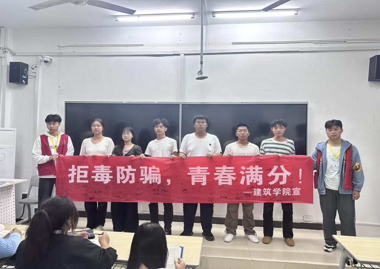 10月14日晚,建筑学院青年志愿者分队走进大一晚自习教室,开展“禁毒+反诈”主题志愿宣讲活动。此次活动以“宣讲+互动”的形式,为400余名新生带来一堂生动的安全教育课。