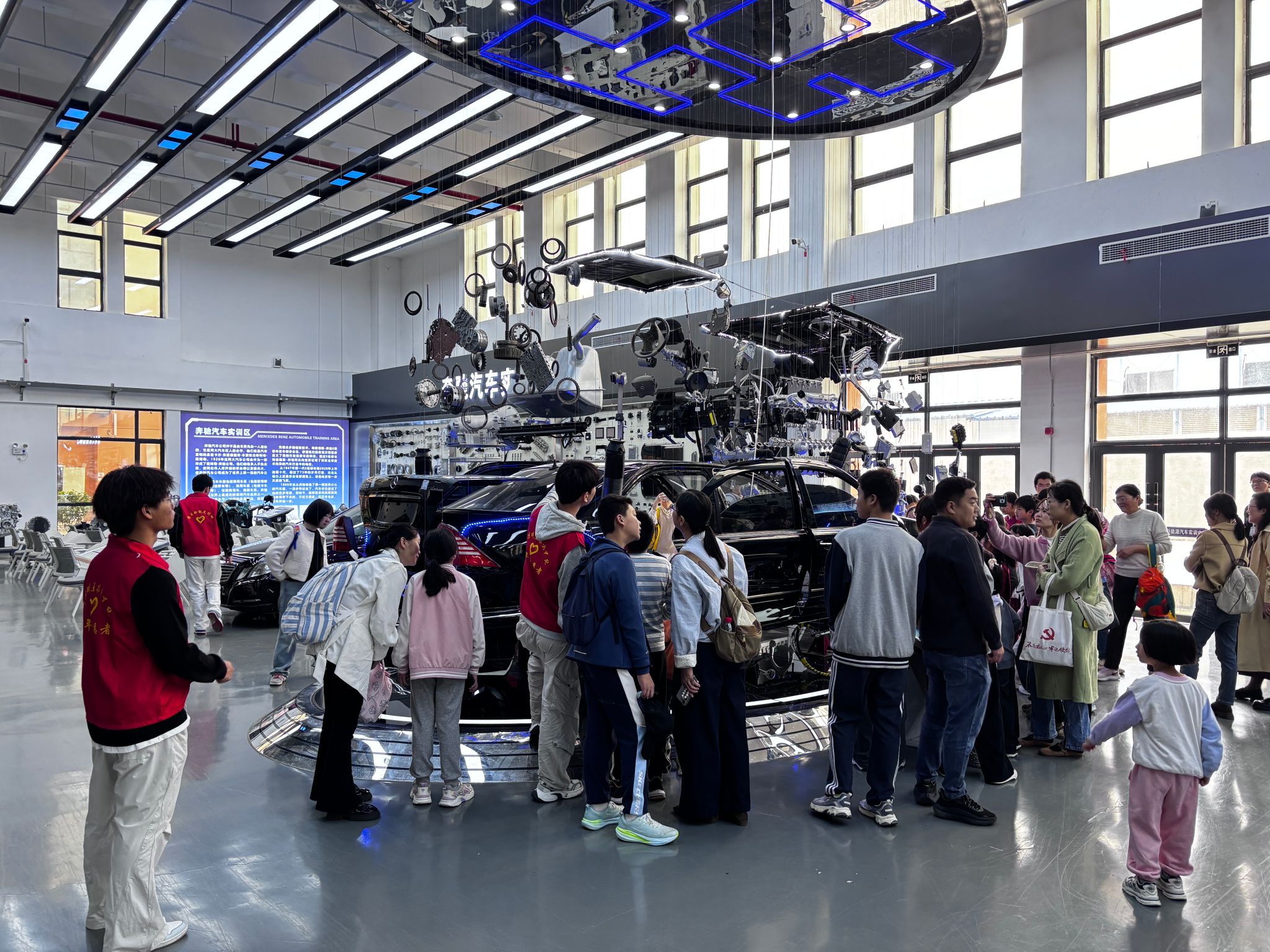 新能源汽车体验区同样热闹非凡。师生志愿者通过互动问答等形式,向青少年们讲解了新能源汽车的动力原理、环保优势及未来发展趋势。孩子们围绕在展示车辆旁,好奇地触摸车身部件,询问电池续航、充电技术等问题,志愿者们一一耐心解答,让“绿色出行”“可持续发展”等理念在互动中深入人心。