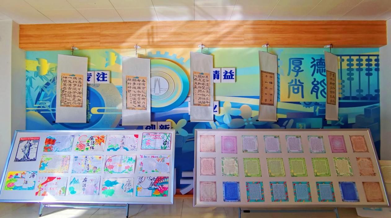 为积极响应学校技能文化校园建设,营造“清廉咸职”浓厚氛围,贯彻落实学校第二次党代会精神,11月3日,由通识教育学院直属党支部主办的“妙笔书廉弘美德,艺心润德树清风”通识学科学生作品展在融智楼一楼大厅正式开幕。