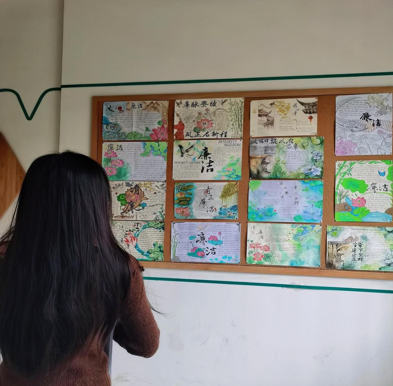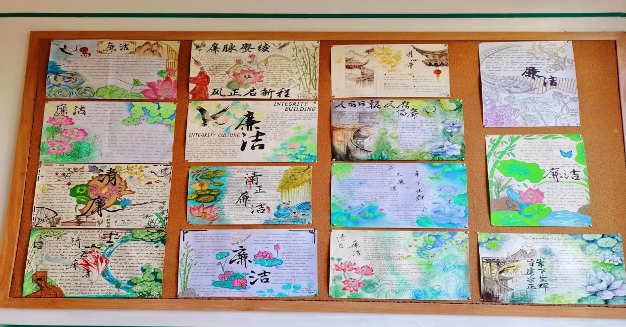 本次活动反响热烈,共征集到学生英语作品1428件、中文软笔书法作品120余件。英语作品以手抄报、英语书写为主,语文作品以《曹全碑》研究会展出的毛笔书法为主,内容聚焦廉洁校园、习近平新时代中国特色社会主义思想、社会主义核心价值观等主题。展出作品立意鲜明、内涵丰富,充分体现“以德立人、以改育人、以文化人”的通识教育理念,有效促进学生职业素养与自主学习能力的提升。