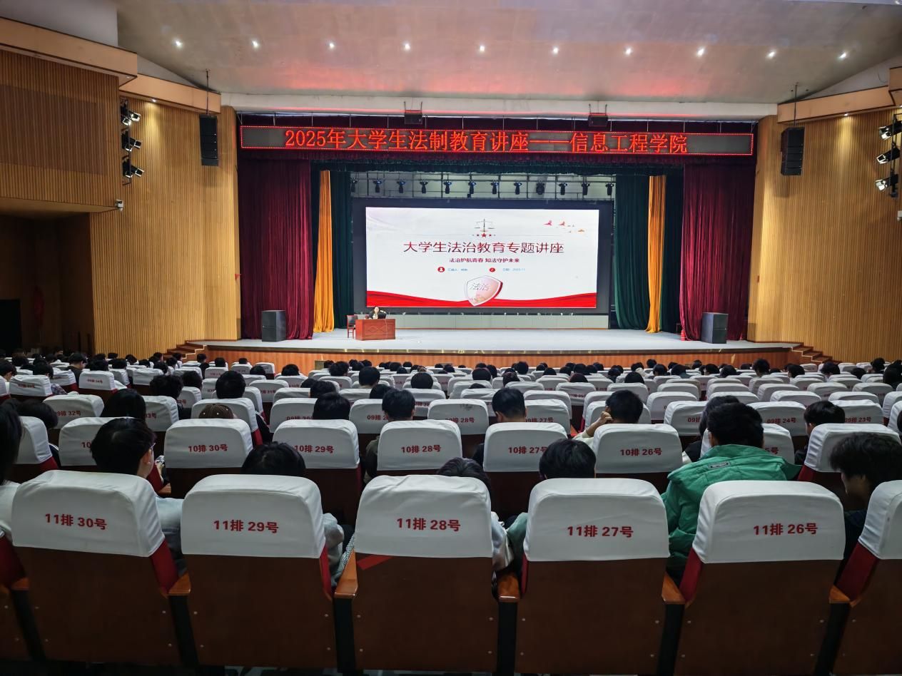 为筑牢大学生法治思想根基,提升法治素养与风险防范能力,11月16日,信息工程学院特邀马克思主义学院直属党支部副书记柯琳开展大学生法治教育专题讲座。 2024 级全体学生及所有专兼职辅导员参加本次活动,活动由党总支副书记郑重主持。