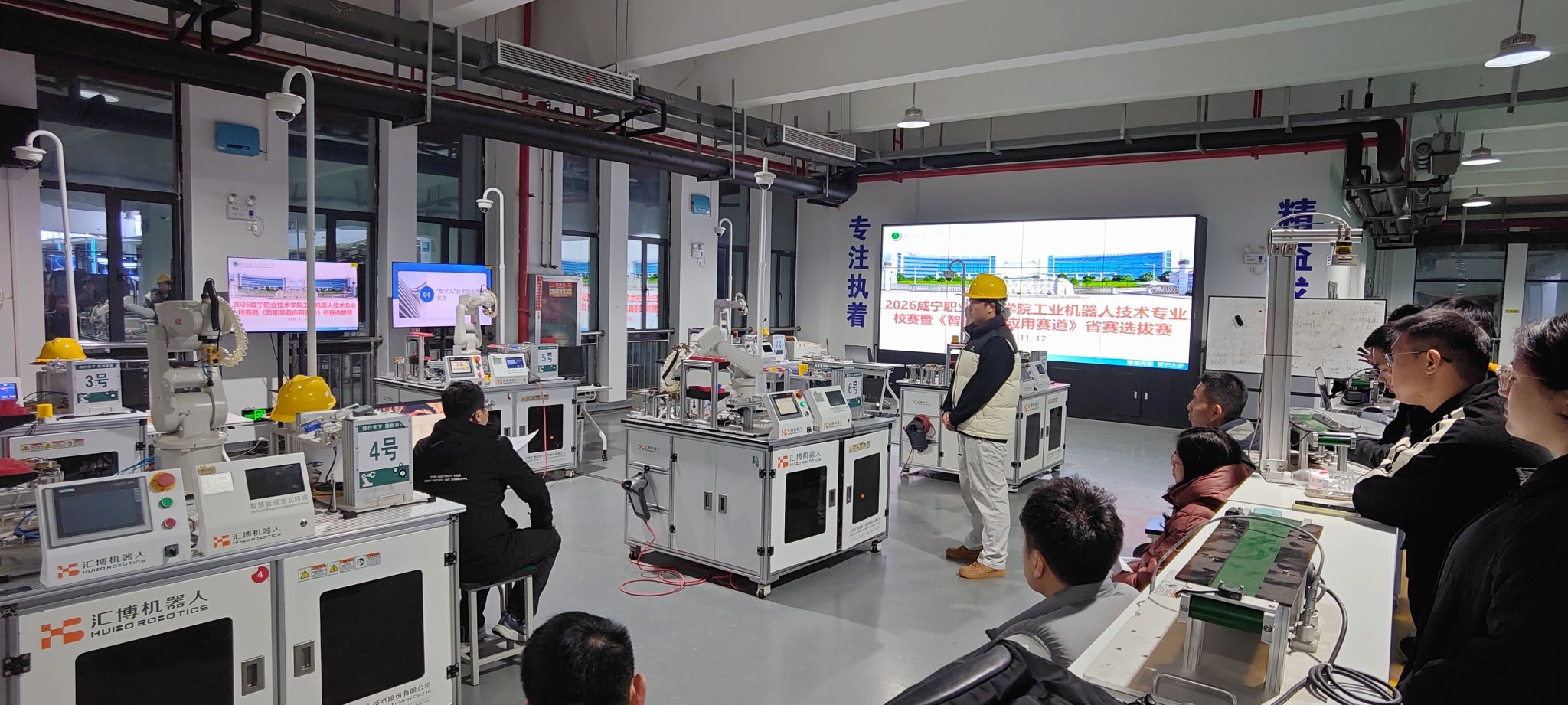 11月17日晚19:00,咸宁职业技术学院工业机器人专业成功举办2026年校赛暨湖北省职业技能大赛《智能装备应用赛道》参赛队员选拔赛。本次比赛内容完全对接2025年省赛与国赛标准,旨在选拔最优秀选手代表学校参加更高级别赛事。