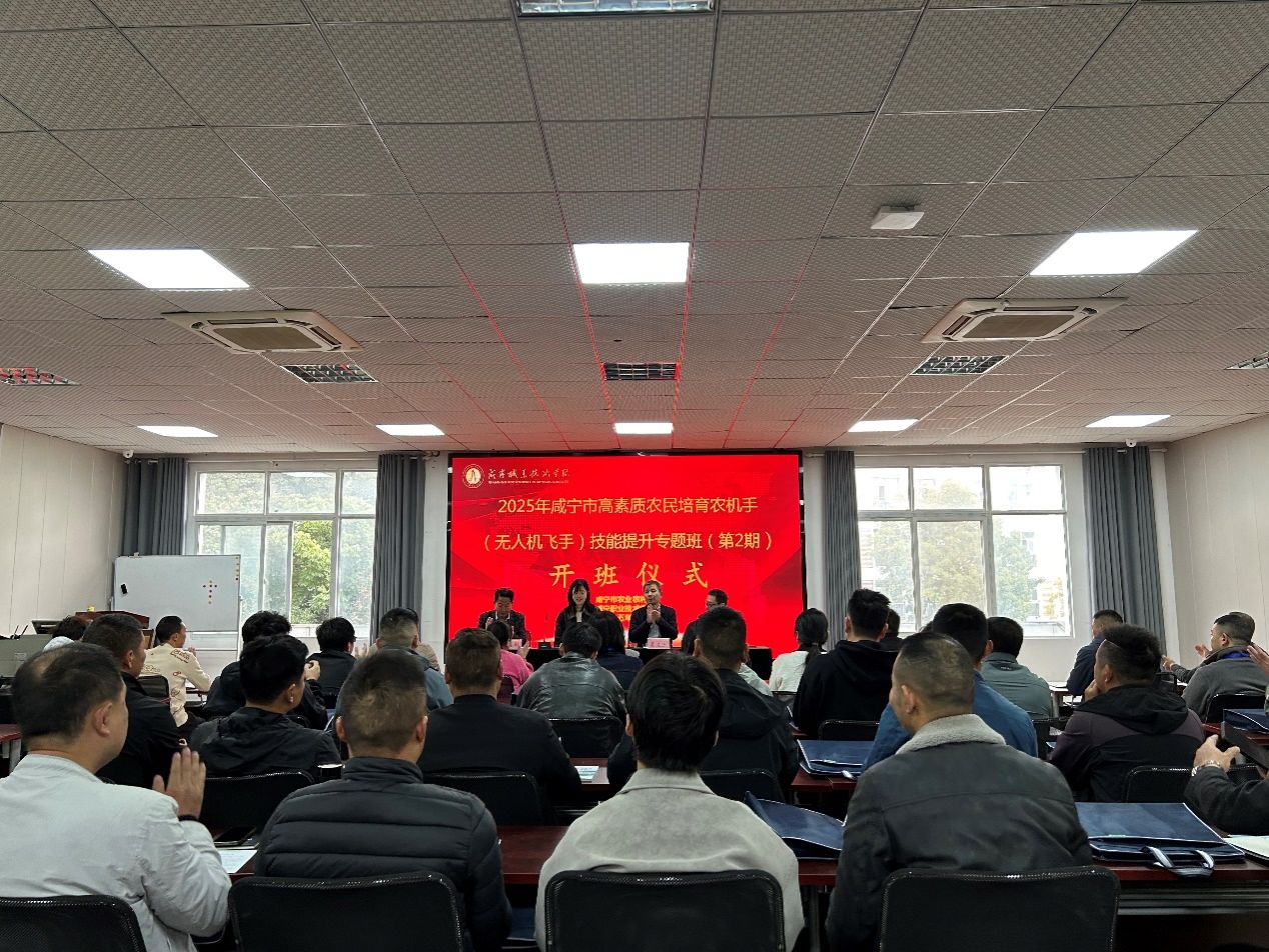 11 月 11 日,继咸宁市2025年高素质农民培育农机手(无人机“飞手”)技能提升专题班(第一期)顺利结业后,第二批52名正在从事或有意愿从事农业生产、经营、服务的农民和返乡人员,在咸宁职业技术学院开启培训。