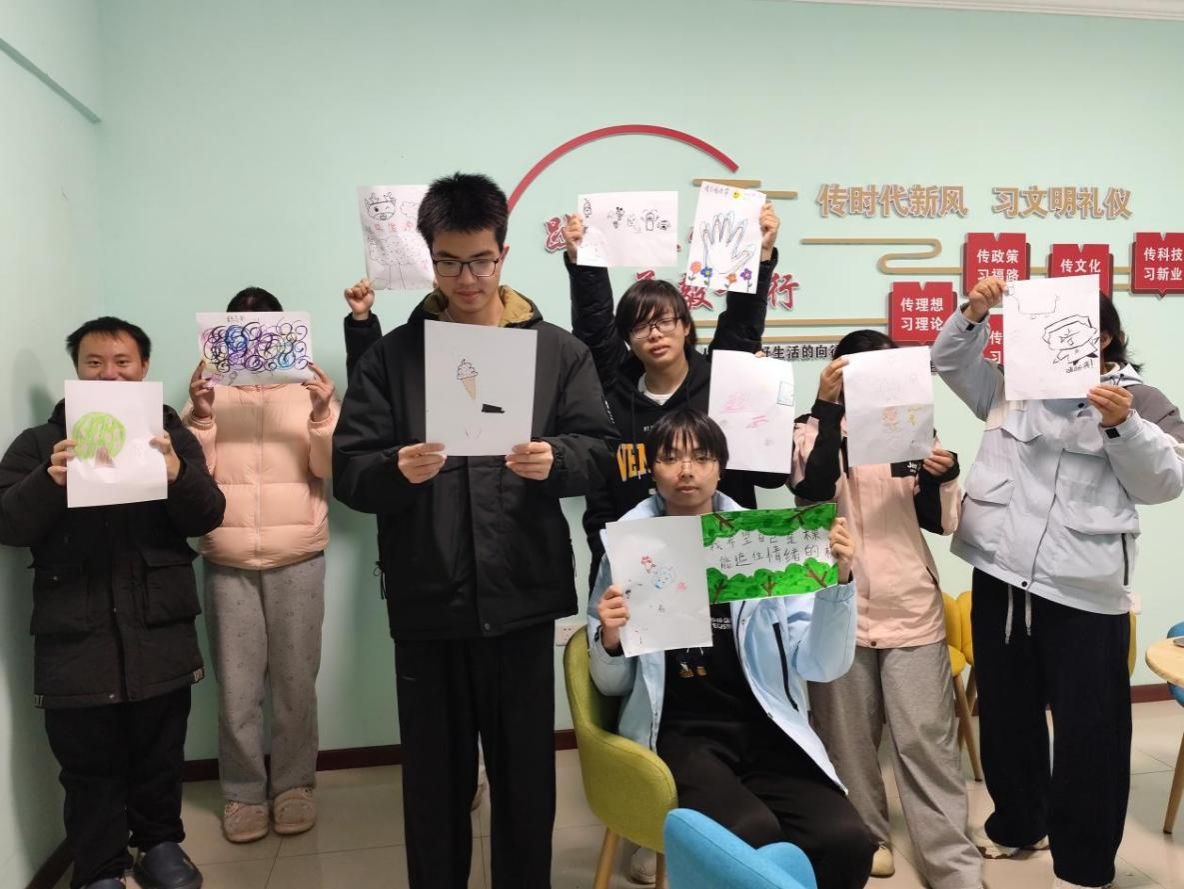 活动最后,大家一起举起自己的涂鸦纸合影,每一张作品都成了一份独特的“心情纪念”。参与同学表示,在纸上随心涂画的过程里,紧绷的心情慢慢放松了下来,这种简单的创作让自己感受到了难得的轻松。