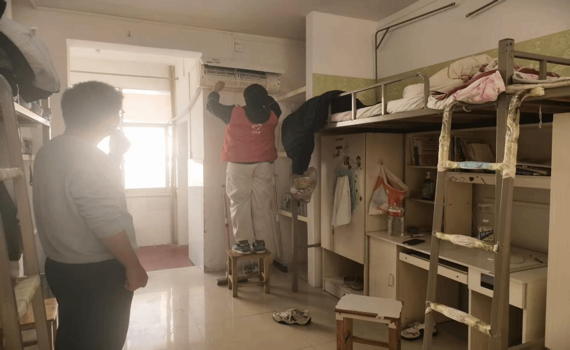 活动中,志愿者们自带工具,深入学生宿舍,耐心拆卸滤网、仔细刷洗除尘,还向同学们讲解滤网定期清洁的重要性与操作技巧。