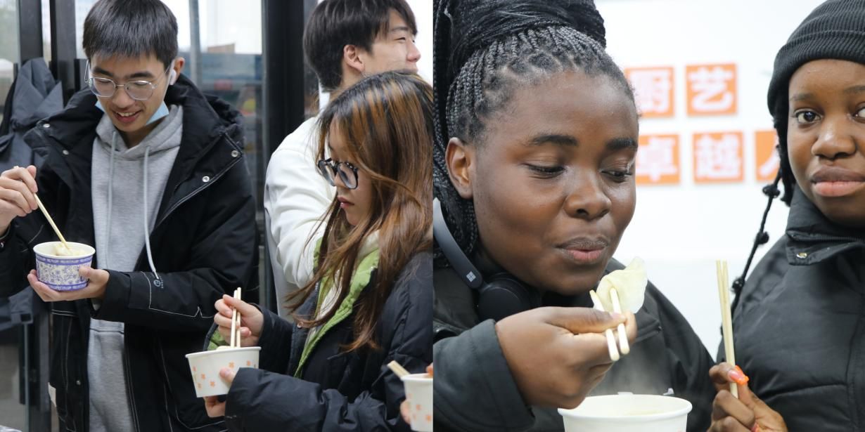 活动现场,大家分工协作,和面、擀皮、包饺子,手法娴熟的同学耐心指导,初学者认真尝试。不同民族的学生带来家乡特色包法,留学生们则在学习中体验中华美食的独特韵味。一张张饺子皮在巧手中变成形态各异的饺子,不仅承载着冬日的温暖,也凝聚了彼此的情谊。