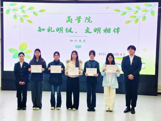 为进一步培育和践行社会主义核心价值观,弘扬中华优秀传统礼仪文化,提升商学院学子的文明礼仪素养与道德修养,营造文明和谐、积极向上的校园文化氛围,商学院于4月2日下午18:30开展“知礼明仪,文明相伴”知识竞赛,引导同学们在竞赛中学习礼仪、践行礼仪,助力学子塑造良好的个人形象与职业素养,让文明之风吹遍校园每一个角落。
