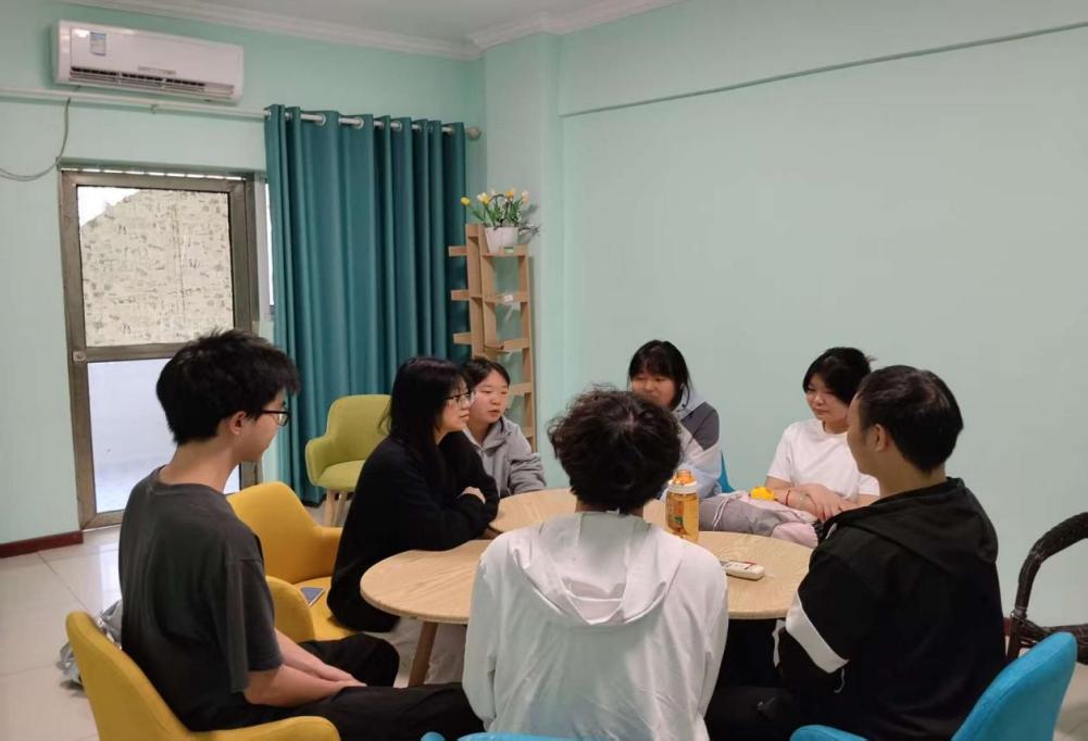 图1: 分享交流环节,同学们围坐畅谈压力来源与情绪感受,在倾听中获得情感共鸣