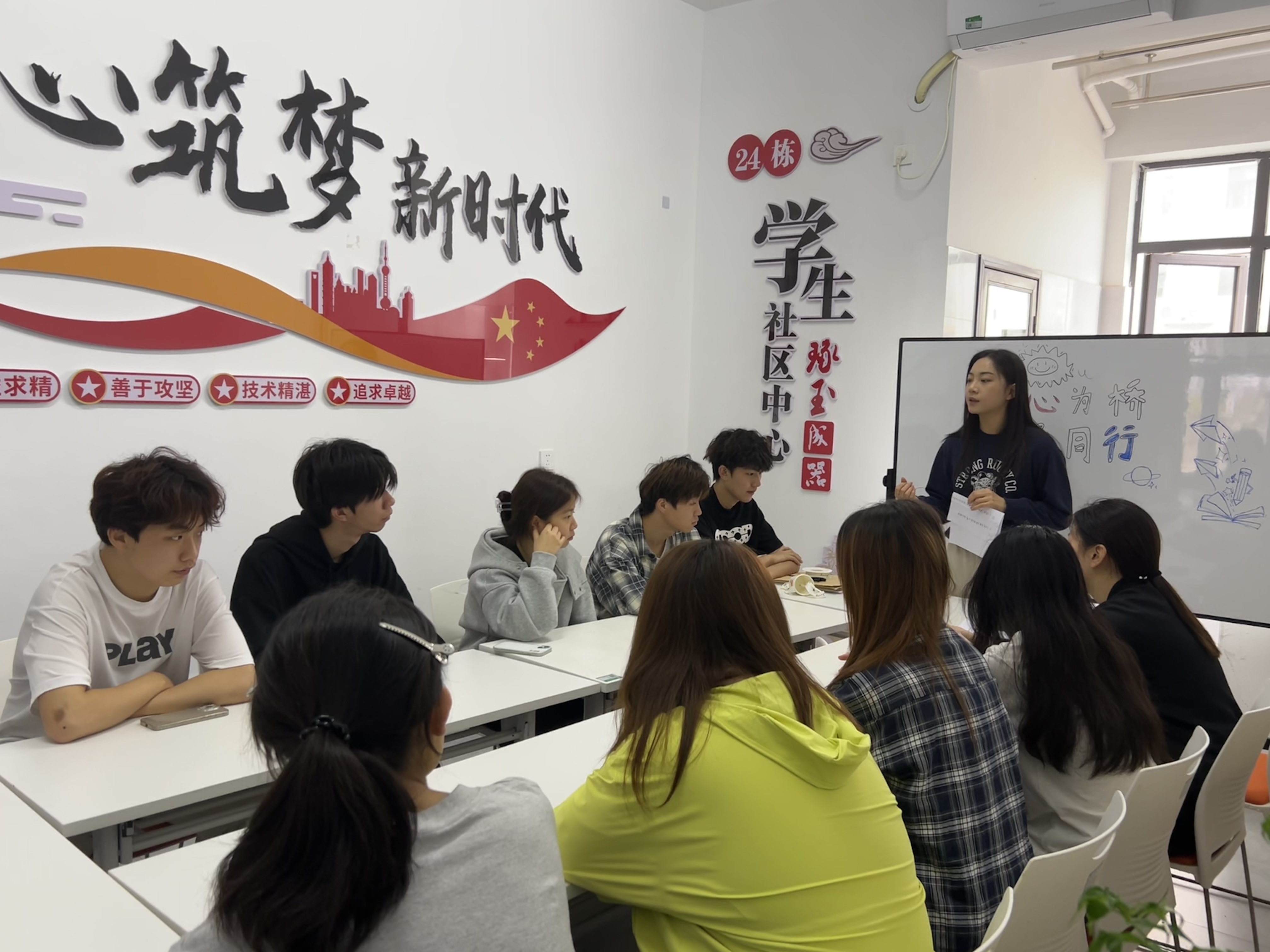 为深化 “一站式” 学生社区心理育人实效,提升学生沟通表达与共情倾听能力,2026年4月10日,健康管理学院24 栋学生公寓 “琢玉坊” 开展 “以心为桥,沟通同行” 人际沟通能力提升团辅活动。本次活动由辅导员安影老师主讲,聚焦学生日常交往需求,以“沉浸式互动+理论讲授”形式搭建实践平台。