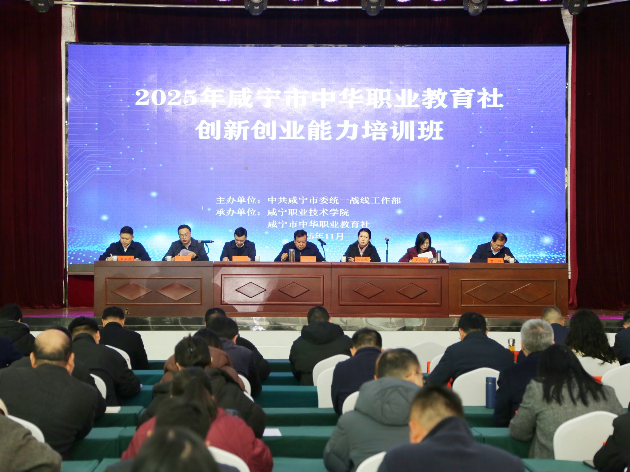 2025年11月19日,我校承办由中共咸宁市委统一战线工作部主办的“2025年咸宁市中华职业教育社创新创业能力培训班”,在大学生活动中心隆重举行开班仪式。省中华职教社专职副主任熊汉华,市委常委、统战部部长石玉华,市中华职教社主任王丹青,咸宁职业技术学院副院长方高文,市委统战部副部长黎钢,省中华职教社一级主任科员王业伟等领导出席会议。市委统战部常务副部长熊斌主持会议。