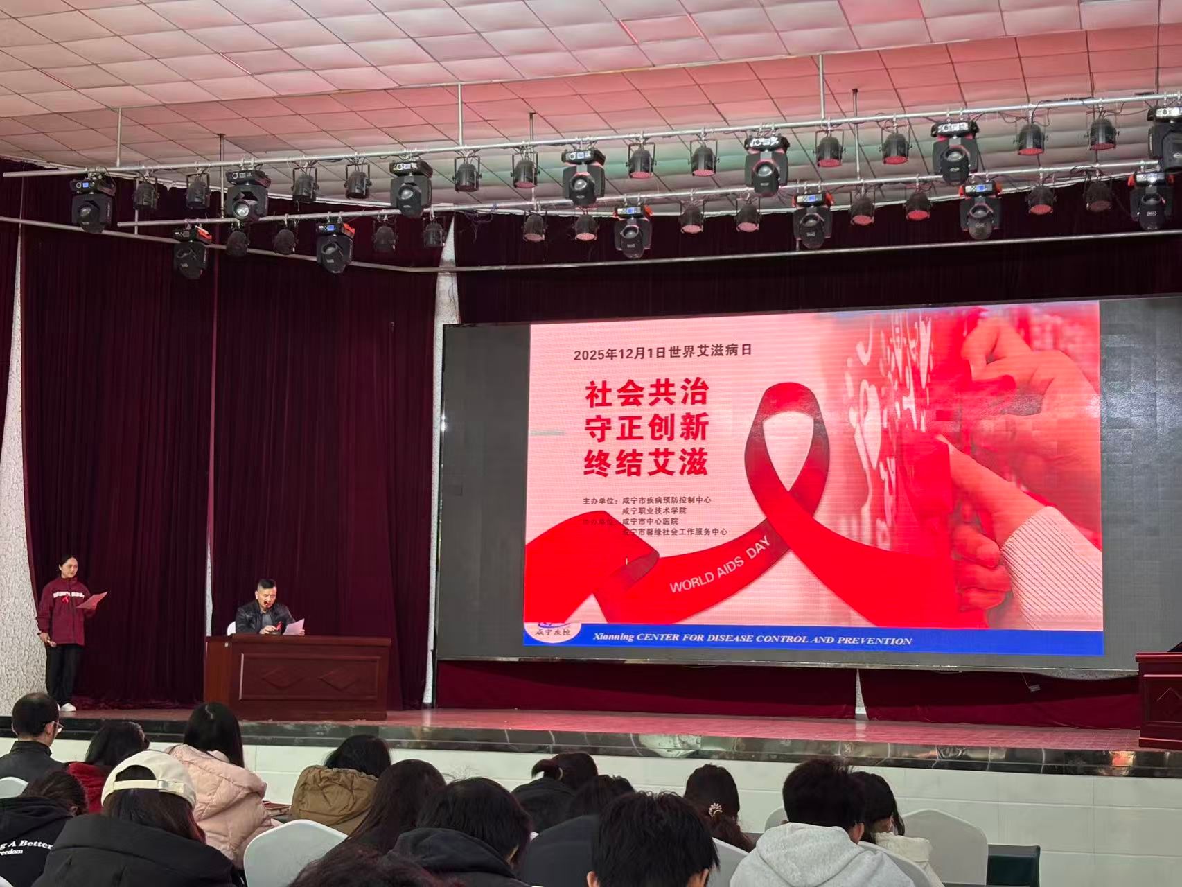 为积极响应第38个“世界艾滋病日”号召,深化青年学生防艾教育,12月3日,咸宁职业技术学院联合咸宁市疾病预防控制中心、咸宁市中心医院及咸宁市馨缘社会服务中心,共同举办了以“社会共治,守正创新,终结艾滋”为主题的艾滋病防治知识专题讲座,为全校青年学生提供了一堂专业、系统、生动的防艾知识课。