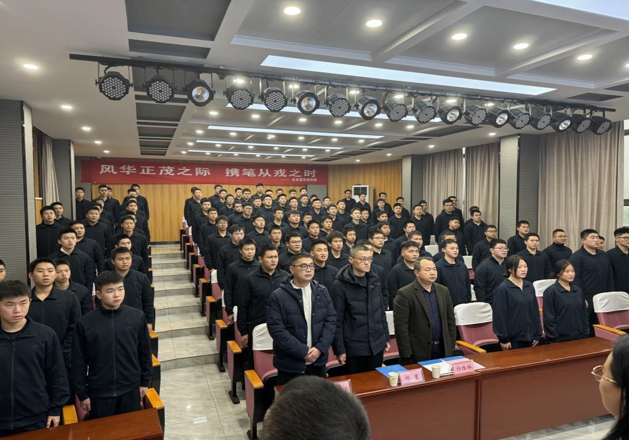 2025年12月24日下午,咸宁职业技术学院举行2025级军事素养特色班开班典礼暨征兵宣传进校园活动。校党委委员、宣传部(统战部)部长曾志,咸宁军分区张俊宁出席典礼并讲话,学工处处长刘晶主持。武装部、军事素养特色班负责同志、工学院、信息工程学院党总支副书记和学生代表共150 余人参加活动。