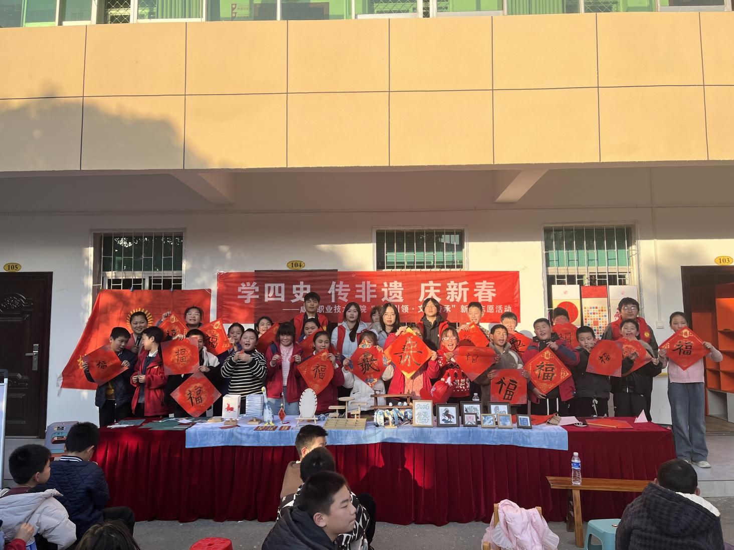 此次志愿活动以“四史”学习为引领,以非遗传承为载体,将红色教育与传统文化体验深度融合,既让社区群众在零距离接触非遗、体验非遗的过程中感受中华优秀传统文化的独特魅力,进一步坚定文化自信,也让青年学生在实践中践行非遗传承使命,更让孩子们在趣味体验中种下传统文化的种子,真正实现以文化人、以文育人,让红色基因与非遗匠心在新春氛围中代代相传。今后,学校还将持续开展此类活动,以多元形式解锁非遗传承新路径,通过沉浸式体验让更多青少年感受传统文化的魅力,让非遗文化在代代相传中焕发持久活力。