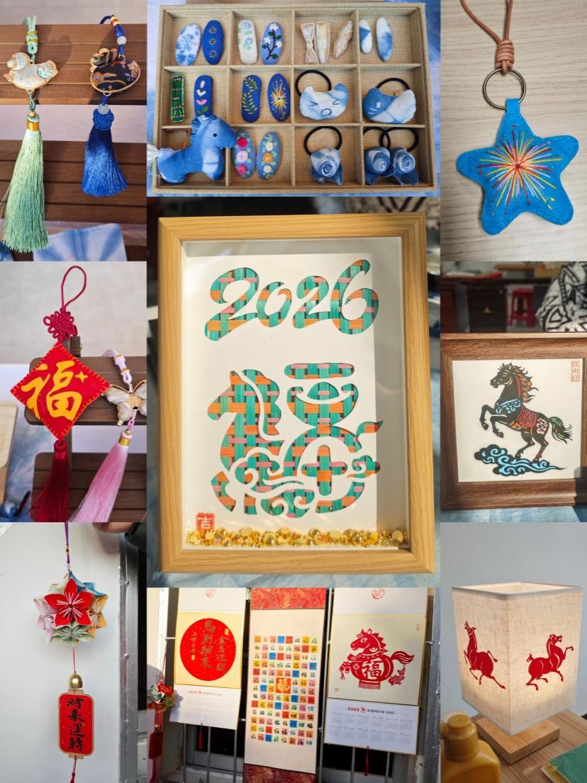 活动现场精心设置非遗展示区与互动体验区,两大区域紧扣新春主题,让非遗文化与新年氛围相融相映。展示区集中呈现以新春为主题创作的“马上”、烟花系列等非遗文创作品,将传统非遗的匠心巧思与新春的喜庆美好结合,让现场群众直观感受非遗文化的当代表达。体验区专设剪纸、书法两大特色体验项目,师生志愿者以通俗易懂的语言为孩子们讲解剪纸基础技法,更手把手、一对一悉心指导大家创作“福”“春”字等窗花及新春春联。